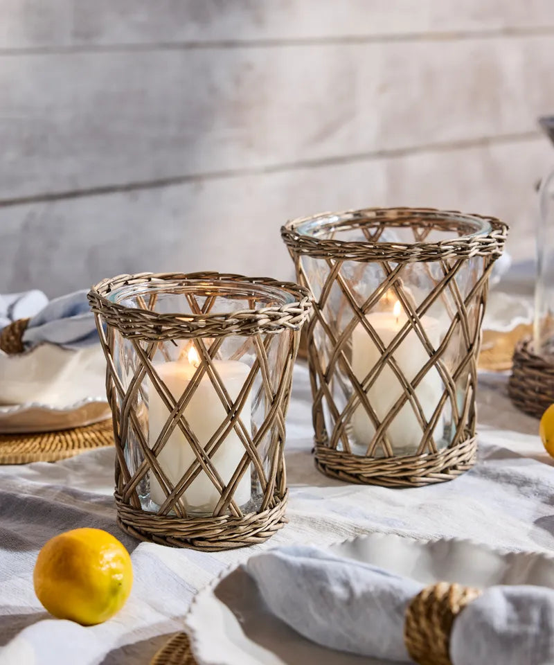 Style Description:Bring a sense of rustic charm to your tablescape this Summer. The Riviera Hurricane creates a warm layered look perfect for candlelight or seasonal florals.